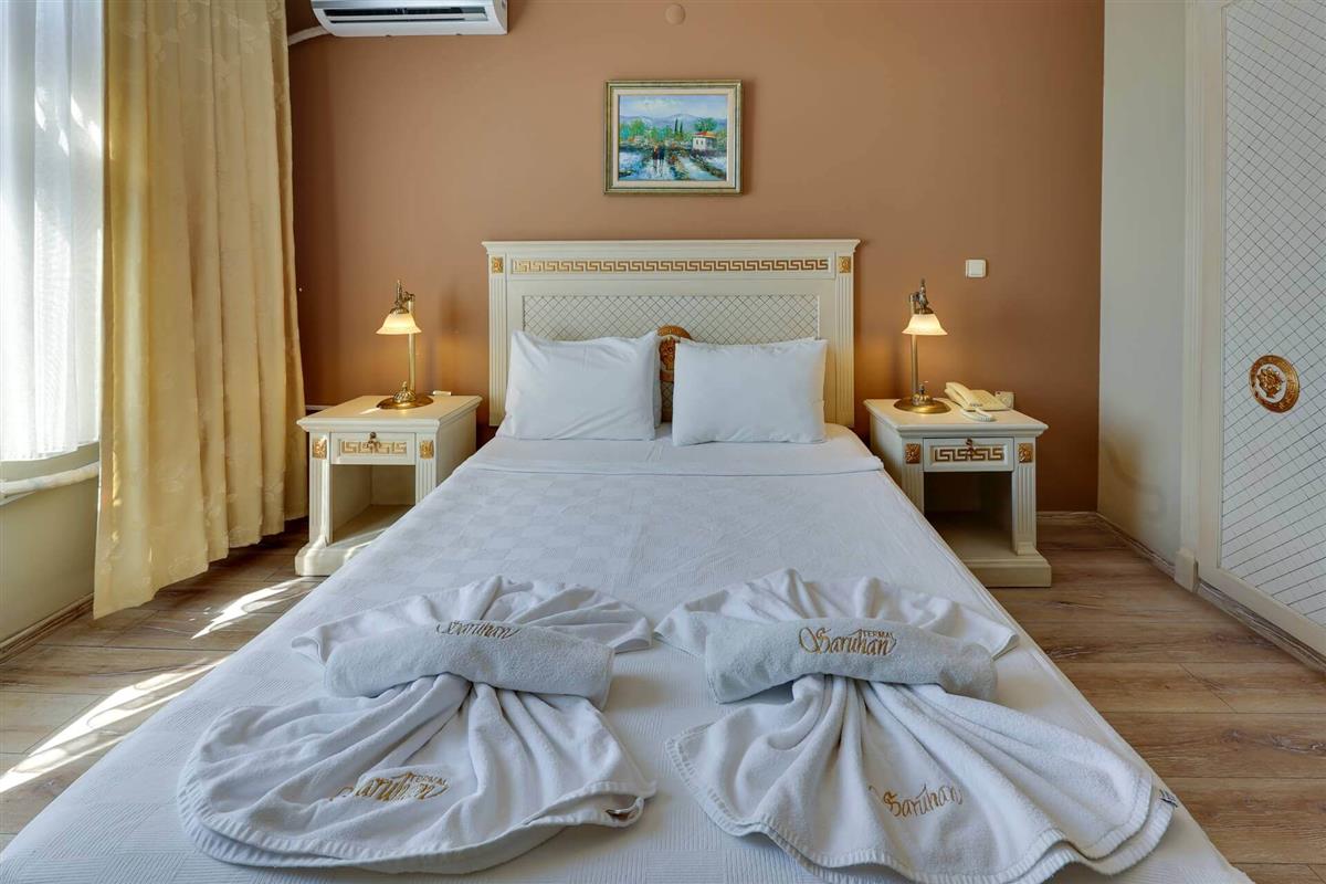 Tesiste kapalı termal havuz, açık havuz, 600 kişilik saruhan balo salonu, 150 kişilik restaurant, La Felıcıta snack bar, havuz bar, spa wellness center Bitki Banyoları, volkanik masaj, çamaşır ve ütü servisi, Jeneratör, asansör, Fitness Center, Açık otopark, 24 saat oda servisi, yürüyüş alanları ve bahçe, sauna, jakuzi, hemşire, çocuk oyun odası, çocuk oyun alanı, kablosuz internet bağlantısı mevcuttur.