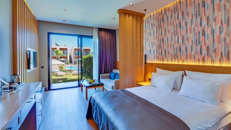 * Odalarda; Su ısıtıcısı ve çeşitli bitki özleri, çay, kahve ile karşılama tepsisi, Uydu düz ekran LED TV, Hemzemin Duş, Klima ve merkezi ısıtma, Direkt telefon (ücretli), Mini bar (ücretli), 7/24 oda servisi (ücretli), Ücretsiz wi-fi, kasa (ücretsiz), Saç kurutma makinesi, banyo buklet malzemeleri, Bornoz ve terlik, Laminat Parke zemin, Havuz/plaj havlusu bulunmaktadır, Turn Down Servisi (Uykudan önce yatak açma hizmeti) konaklama süresince ücretsizdir, Özel kapalı otoparktan asansörle odaya doğrudan erişim bulunmaktadır.