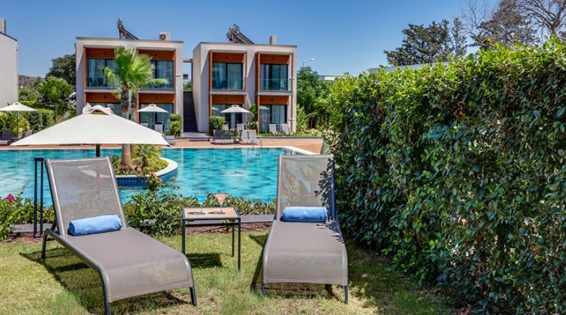 * Bahçe Odalar; 35 m² genişliğindedir. Zemin katta bulunmaktadır. Yüzme havuzuna bakan balkon/ bahçe mobilyaları ile donatılmış özel bahçe içerisinde yer almaktadır. Odada çift kişilik yatak, oturma alanında bir adet sofa bulunmaktadır. Maximum 3 kişi konaklamasına uygundur.