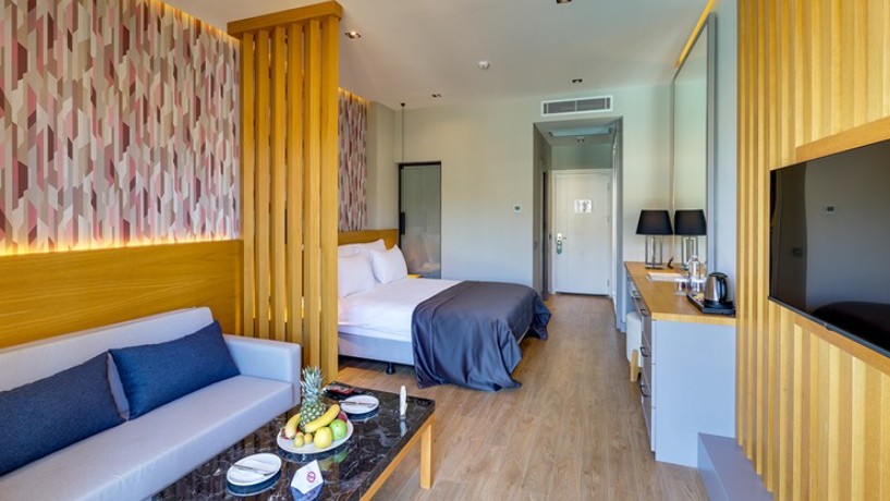 * Tüm odalarımızda çift kişilik yatak, oturma alanında sofa koltuk, laminat parke zemin ile botanik bahçelerine ve merkezi konumdaki yüzme havuzuna bakan mobilyalı balkonlar bulunmaktadır.