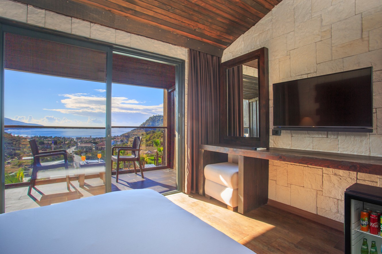 Oda Özellikleri* Tesisin 103 odası mevcuttur.* Standart Oda: 17 m² genişliğindedir. Maksimum 3 kişi konaklamaya uygundur. 40 adettir.* Deluxe Odaları: 20 m² genişliğindedir. Maksimum 2 kişilik konaklamaya uygundur. 21 adettir.* Deluxe Teraslı Odaları: 20 m² genişliğindedir. Maksimum 2-3 kişilik konaklamaya uygundur. 7 adettir. Tesisin giriş katında yer almaktadır. Terasında sadece oturma grubu mevcuttur.* Panaromik Teras Jakuzili Oda; 17 m² genişliğindedir. Maksimum 2 kişi konaklamaya uygundur. 22 adettir. Odanın ön bölümünde bir teras bulunmaktadır. Teras içerisinde ahşap zemin üzerinde 1 adet jakuzi + 2 adet şezlong + masa ve sandalye Mevcuttur.* Aile Odası: 32 m² genişliğindedir. Ara kapılı 2 ayrı odadan ve 1 adet banyodan oluşmaktadır. Odaların birinde çift kişilik yatak diğerinde iki adet tek kişilik yatak bulunmaktadır. Maksimum 4 kişinin konaklayabileceği, 5. kişi için ek yatak konulmaya müsait odalardır. 9 adettir.* Grand Delüks Jakuzili Oda – Özel Havuzlu: 32 m² genişliğindedir. Maksimum 2 kişilik konaklamaya uygundur. 4 adettir. Çift kişilik yatak mevcuttur. Odada özel havuzu mevcut olup ısıtmalı havuz değildir.* Odalarda banyo, wc, emanet kasa, split klima, saç kurutma makinesi, telefon, Lcd, müzik kanalı ile birlikte Sat-Tv, Mini Bar, kettle çay kahve seti ve balkon bulunmaktadır. * Grand Deluxe Jakuzi - Özel Havuzlu Oda seçeneklerinin havuzlarında ısıtma bulunmamaktadır.