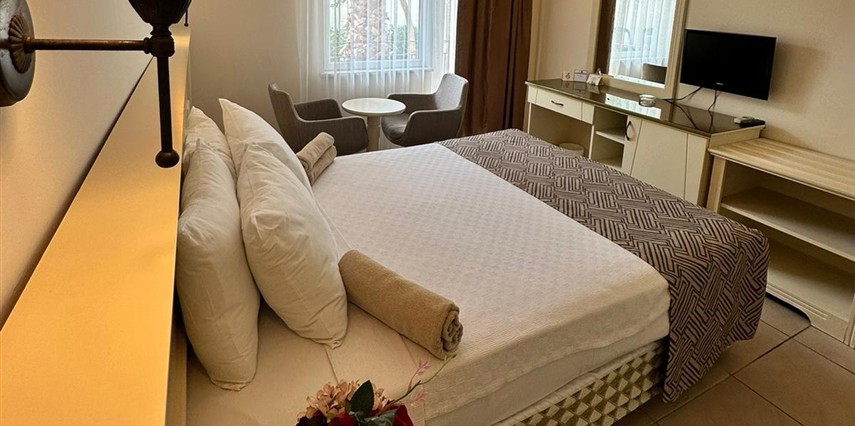 Oda Özellikleri* Odaların hepsi balkonludur.* Standart Odaları: 20 m² genişliğindedir. Max. 3 yetişkin ya da 2+1 konaklamalar için uygundur.* Tesiste 1 adet engelli odası bulunmaktadır.* Tüm odalar küvetli olduğu için engelli kullanımına uygun değildir. Genel Özellikler* Tesis ile deniz arasında yürüyüş parkuru ve oyun parkı mevcuttur* Tesisin genel alanları engelli misafirler için kullanışlıdır.* Tesiste ücretsiz internet (wi-fi) genel alanlarda ücretsiz sunulmaktadır.* Minibarlar boş sunulmaktadır.* Tesise evcil hayvan kabul edilmemektedir.*Tesisin 100 m² genişliğinde 60 kişi kapasiteli toplantı salonu bulunmaktadır. Ekipmanlar mevcut değildir.